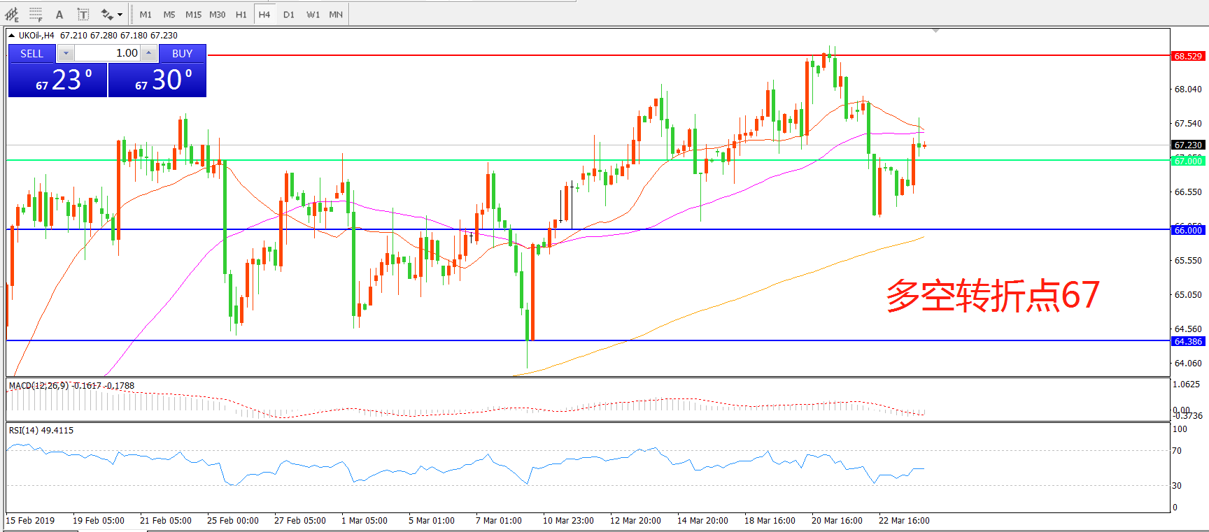 交易策略: 在67.00之下看跌,目标66.00 64.00