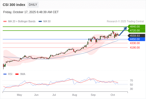 在 4450.00 之上,看涨,目标价位为 4720.00 ,然后为 4840.00 。