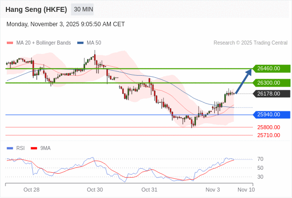 交易策略: 在 25940.00 之上,看涨,目标价位为 26300.00 ,然后为 26460.00 。