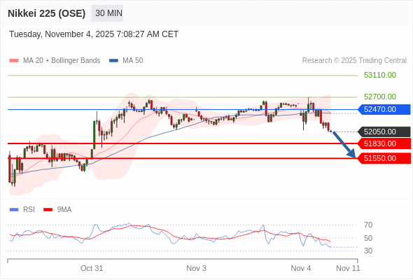 交易策略: 在 52470.00 之下,看跌,目标价位为 51830.00 ,然后为 51550.00 。