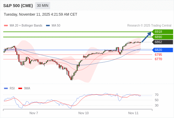 在 6820 之上,看涨,目标价位为 6890 ,然后为 6918 。