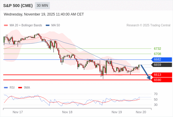 在 6682 之下,看跌,目标价位为 6613 ,然后为 6590 。