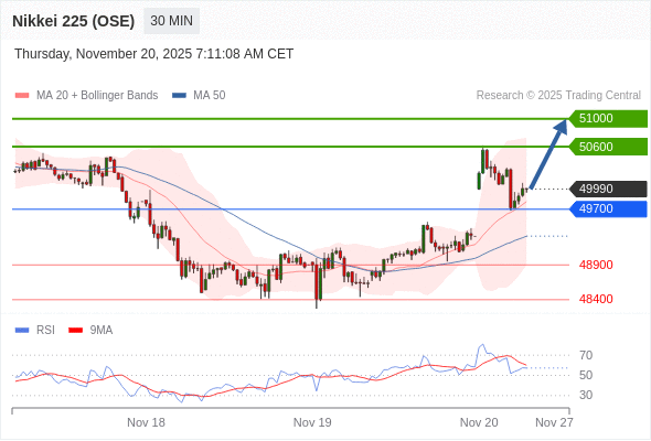 在 49700 之上,看涨,目标价位为 50600 ,然后为 51000 。