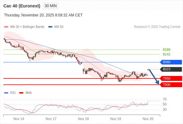 在 8080 之下,看跌,目标价位为 7950 ,然后为 7900 。
