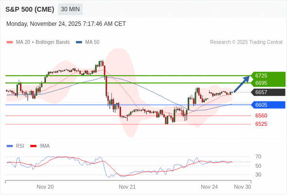 在 6605 之上,看涨,目标价位为 6695 ,然后为 6725 。