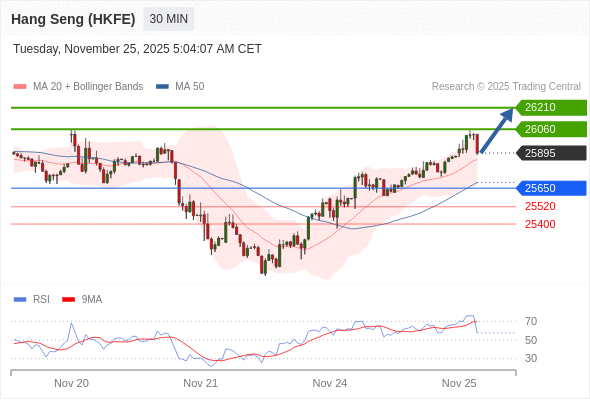 在 25650 之上,看涨,目标价位为 26060 ,然后为 26210 。