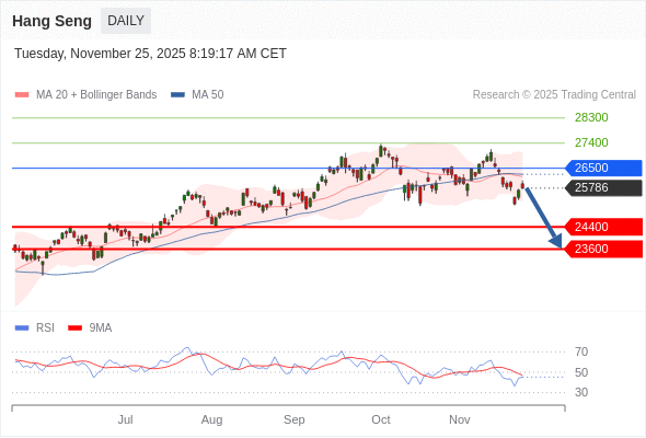 交易策略: 在 26500 之下,看跌,目标价位为 24400 ,然后为 23600 。