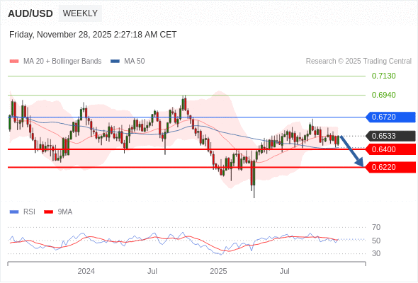 技术点评: 只要0.6720阻力位不被突破,向下跌破0.6400位置的风险很高。