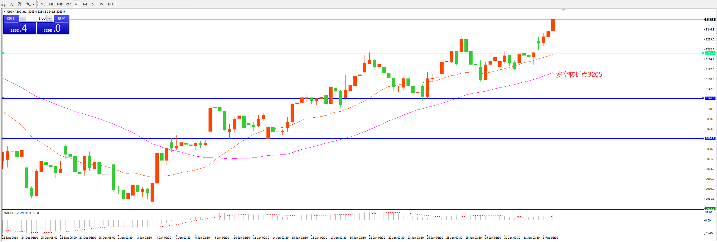 多空转折点:3205.00