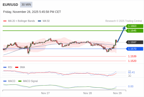 交易策略: 看涨,当 1.1570 为支撑位。