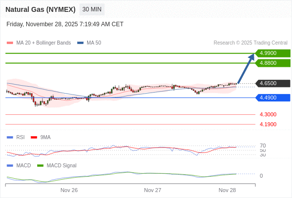 备选策略: 如跌破 4.4900 ,Natural Gas (NYMEX) (JAN6) 目标方向定在 4.3000 和 4.1900 。